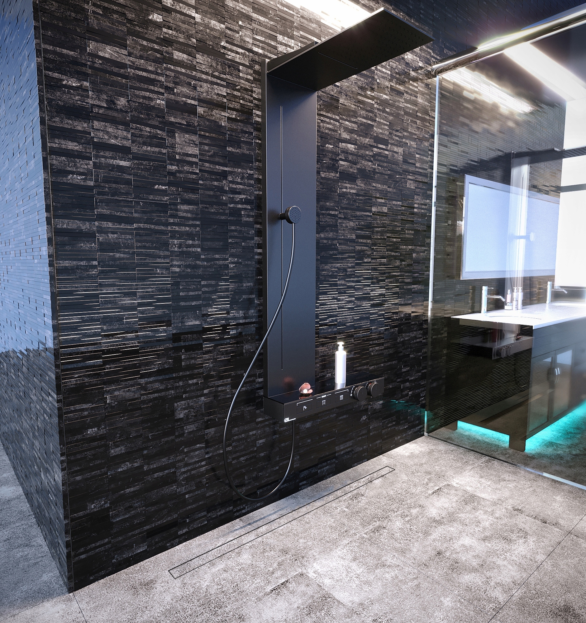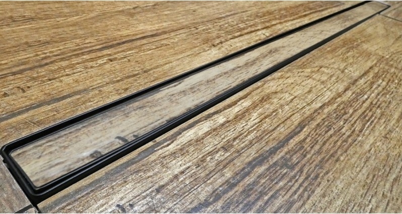 Лінійний слив тонкий чорний сифон VIEGA 60 пластина