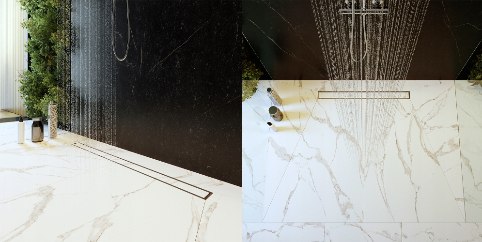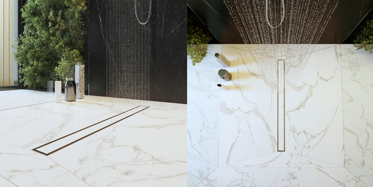 Ви можете покласти плитку, щоб приховати дренаж і створити гладку однорідну поверхню підлоги. Крім того, ппанель можна залишити видимою, створюючи елегантну поверхню, яка гармонійно впишеться в будь-який декор ванної кімнати.