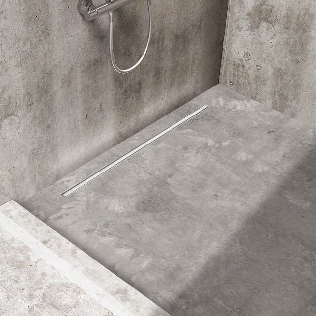 Лінійні зливи, доступні в кольорах непідвладної часу елегантної нержавіючої сталі або стильного чорного, будуть особливокрасиво з необробленими, вишуканими, повними сірого, сучасними індустріальними ванними кімнатами.