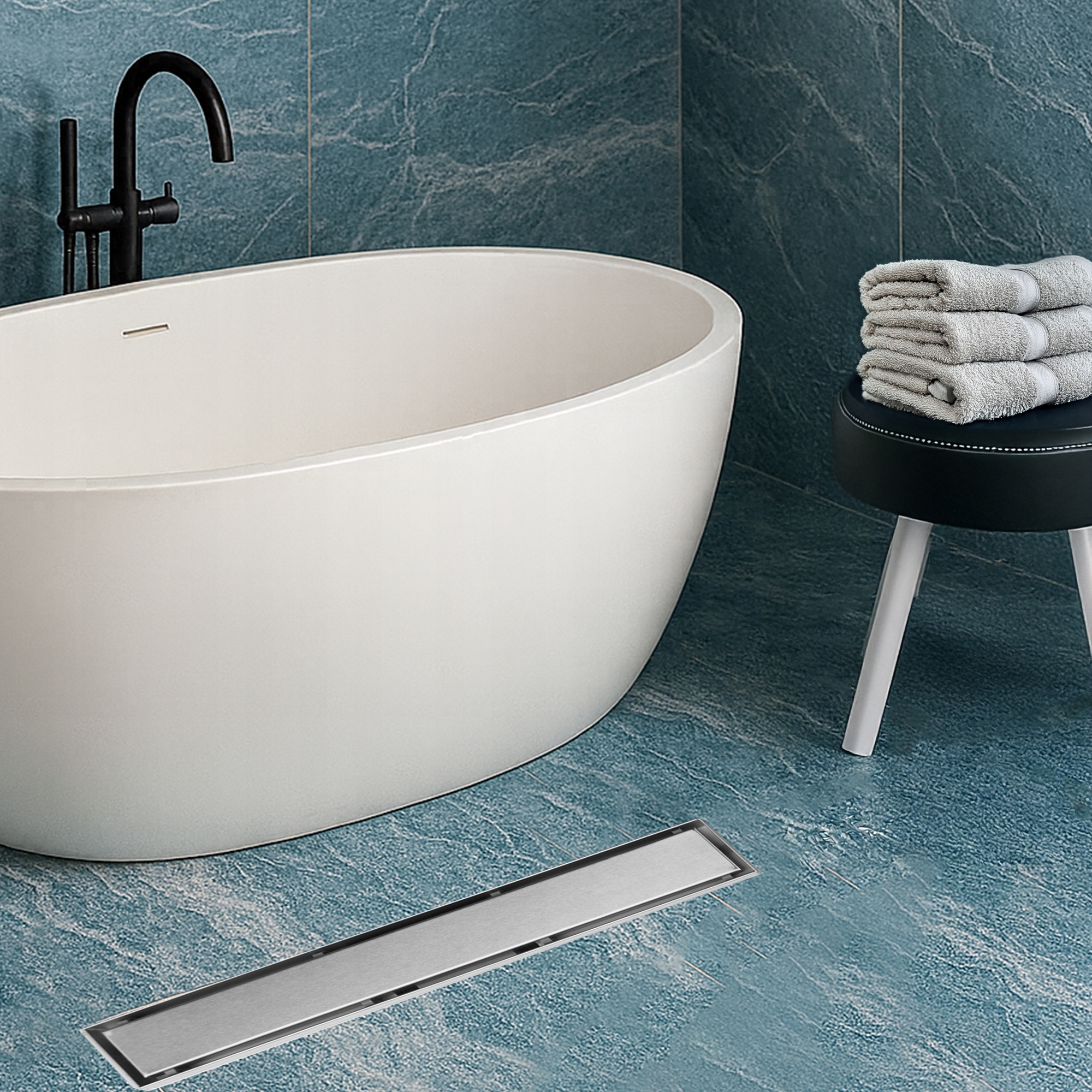 Лінійний злив ESTIVA ідеально підходить для сучасних ванних кімнат, особливо душових кабін. Завдяки можливості обклеювання плиткою злив стає практично непомітним, що додає інтер'єру елегантності та мінімалізму.