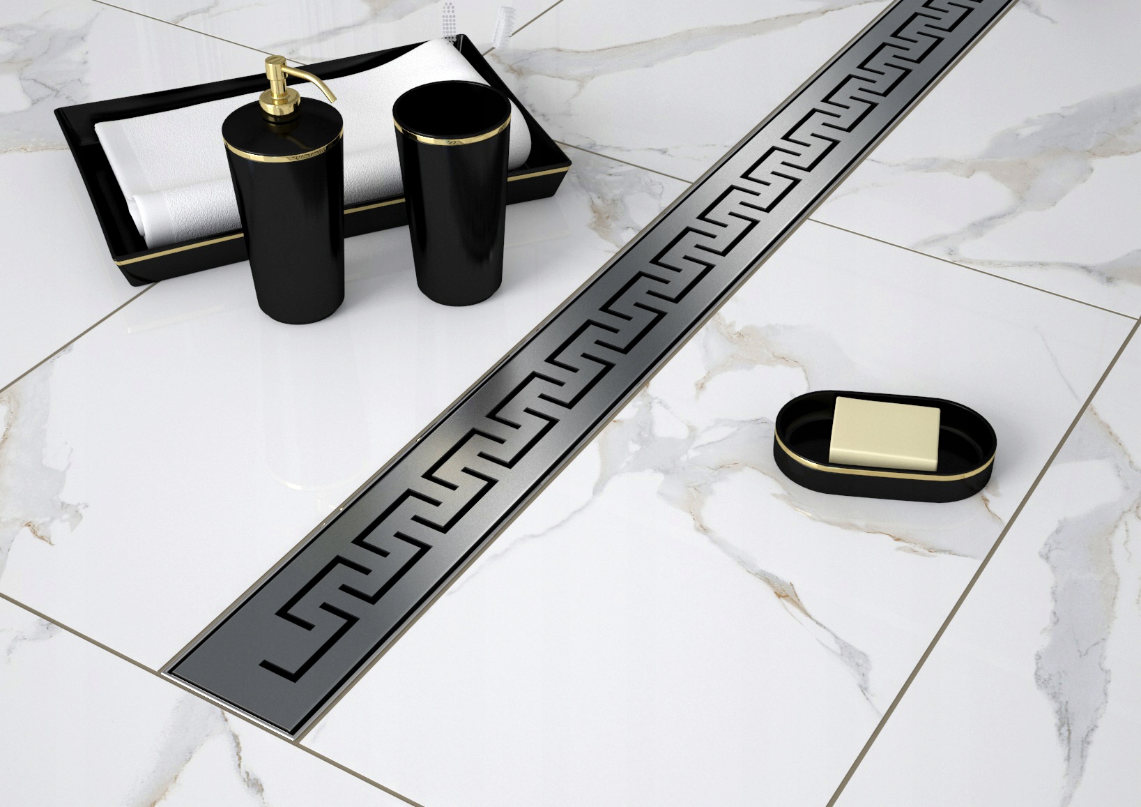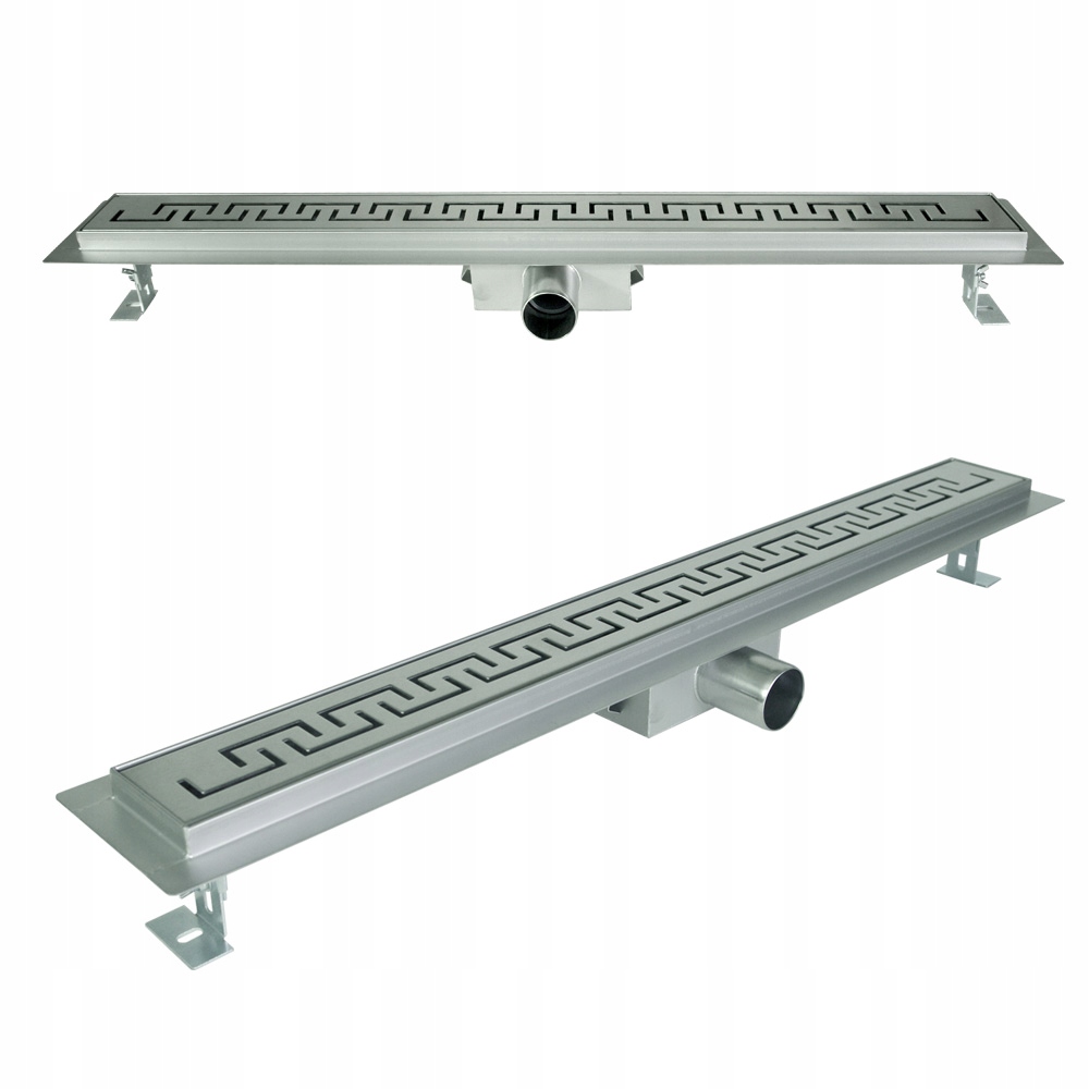 злив сталевий лінійний, кришка з вибраним малюнком товщиною 1,5 мм, сифон з кошиком і випуском, вирівняні ніжки для правильного розташування зливу, необхідний водонепроникний килимок для правильного встановлення, інструкція зі складання польською мовою.