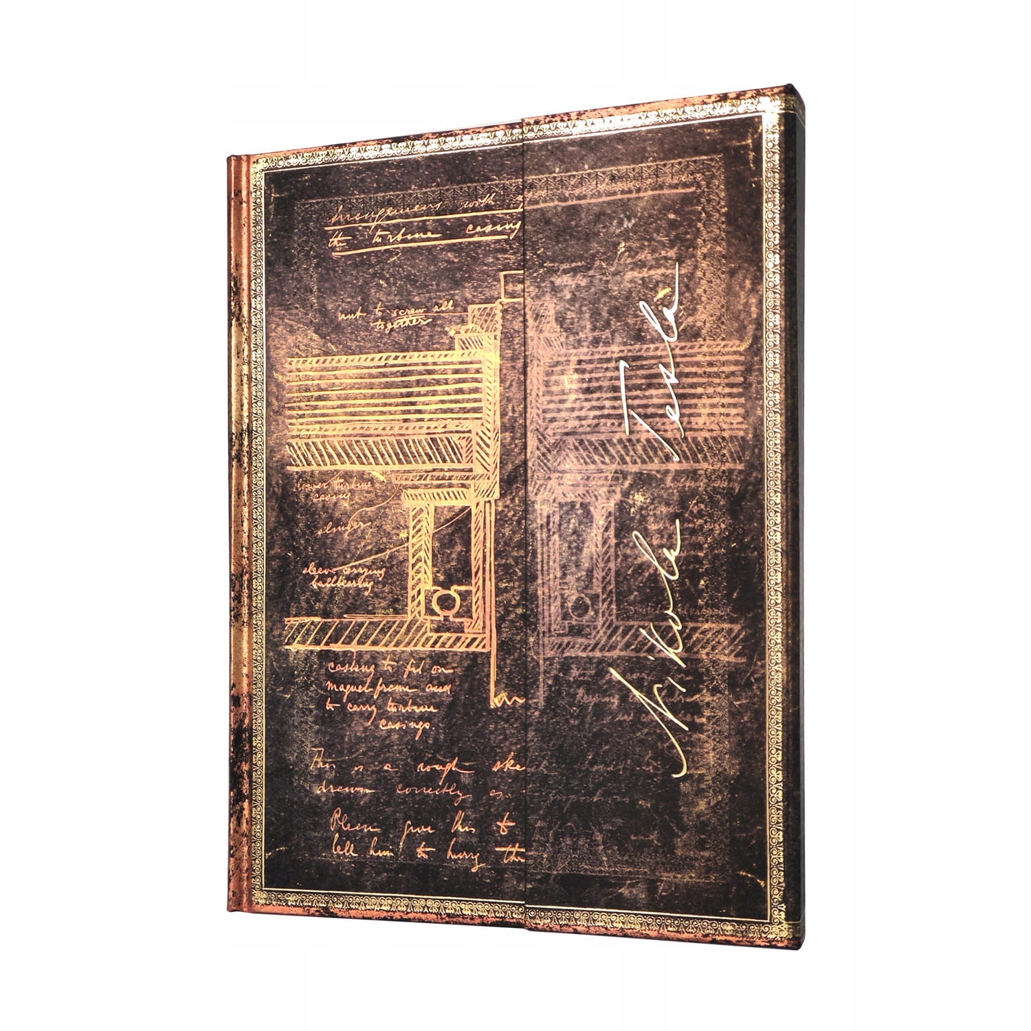 На обкладинках цієї серії є репродукції відомих рукописів або начерків. На обкладинці цього блокнота зображено декороване відтворення конструкції турбіни Ніколи Тесли. Блокнот має магнітну застібку.