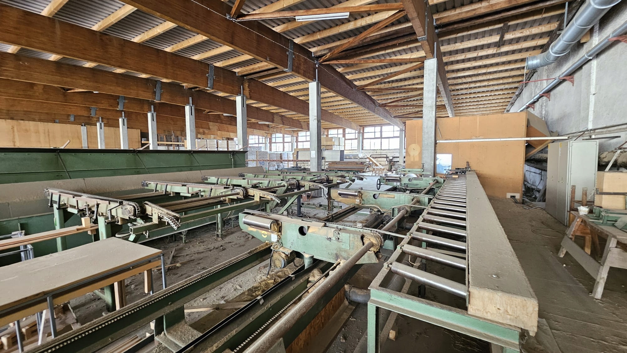 Повна лінія форматування дошки, що складається з роликових конвеєрів, пристроїв для видалення, транспортної таблиці, Haist Saw, чотирьох видів Winig Hydromat 22 A потоки з відтворенням та Staplarki.