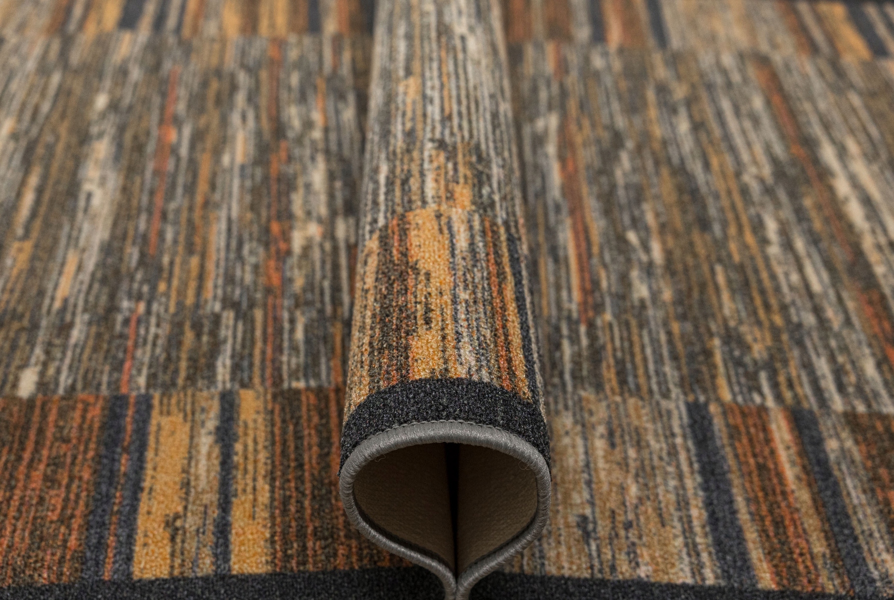 Килимок Adagio проти ковзання з низьким петлеподібним ворсом з геометричним візерунком кремового, графітового з помаранчевими акцентами та прогумованим дном.