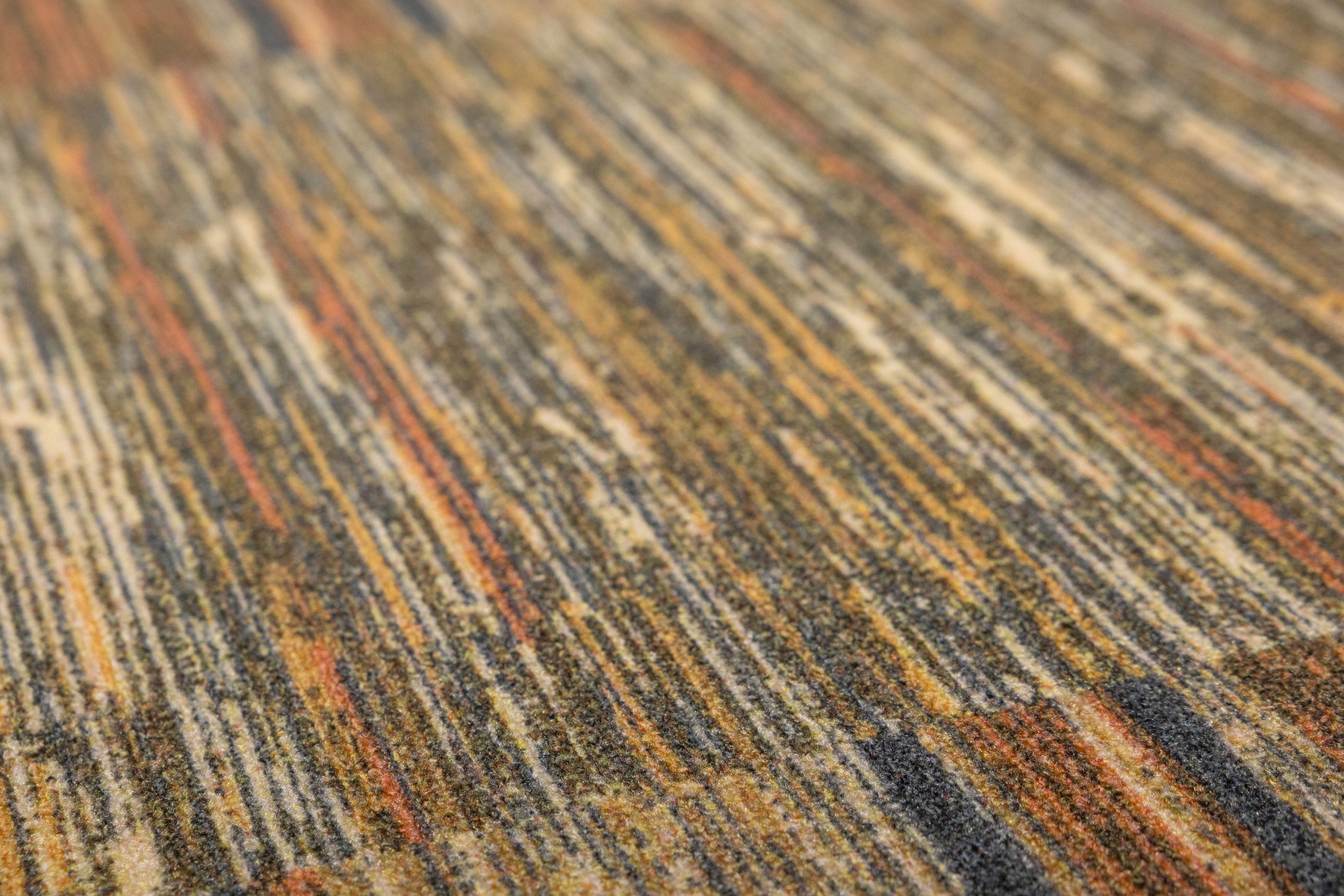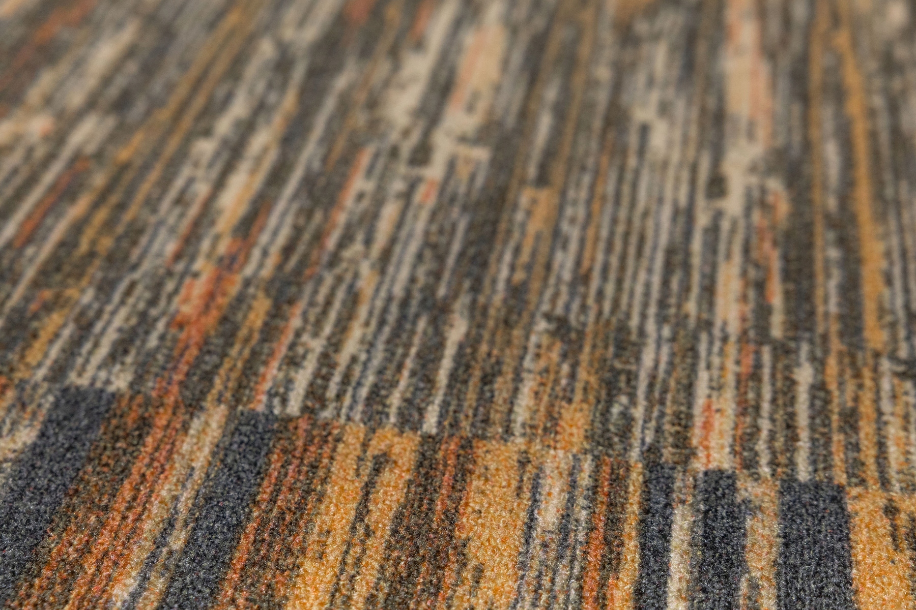 Протиковзка доріжка ADAGIO характеризується елегантним геометричним малюнком, який ідеально вписується в класичний, традиційний інтер'єр. Центральна частина виконана у відтінках кремового, графітового з додаванням помаранчевого, що надає всьому виробу гармонійності та стилю. Бордюри у вигляді симетричних смуг створюють ледве помітний контраст і підкреслюють лінії тротуару. Делікатні переходи кольорів і фактура тканини додають глибини, завдяки чому візерунок виглядає надзвичайно ефектно.