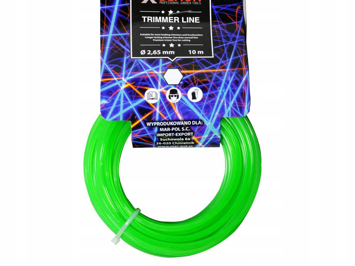 Ріжуча лінія призначена для бензинових кущорізів та електричних тримерів. Лінія шестикутного перерізу діаметром 2,65 мм і довжиною 10 м виготовлена з високоміцного пластику.