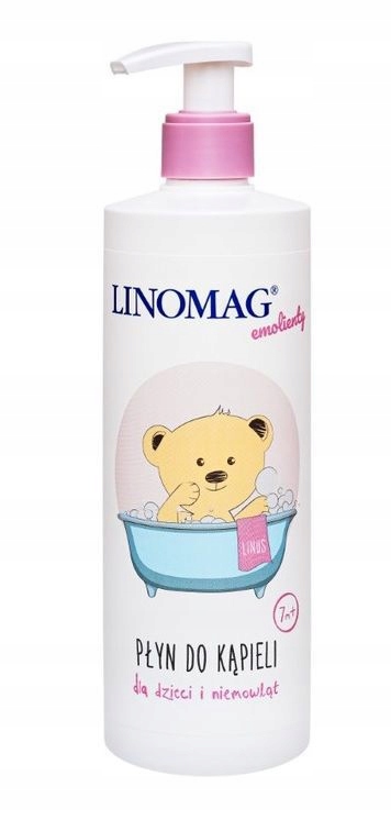 Рідина для ванн LINOMAG® Bath рекомендована для щоденного купання дітей та немовлят від 7 місяців. Активні речовини - це комбінація м'яких очищувальних речовин і лляної олії, багатої кислотами омега-3 і омега-6.