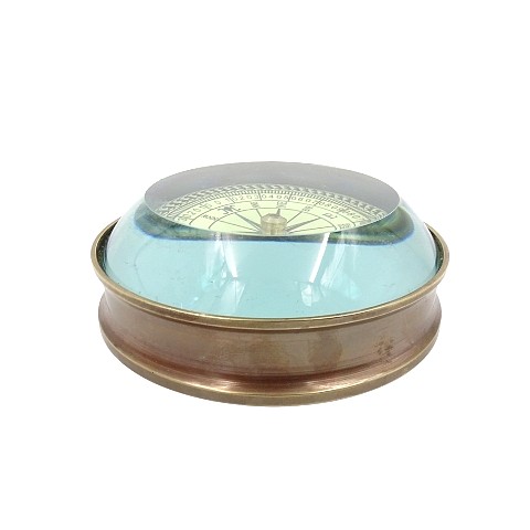 Лінзовий компас є ідеальною прикрасою робочого столу кожного любителя подорожей. Його можна використовувати як оригінальне і стильне прес-пап'є. «Плаваючий» циферблат компаса створює враження, що всередині рідина. Компас справний.