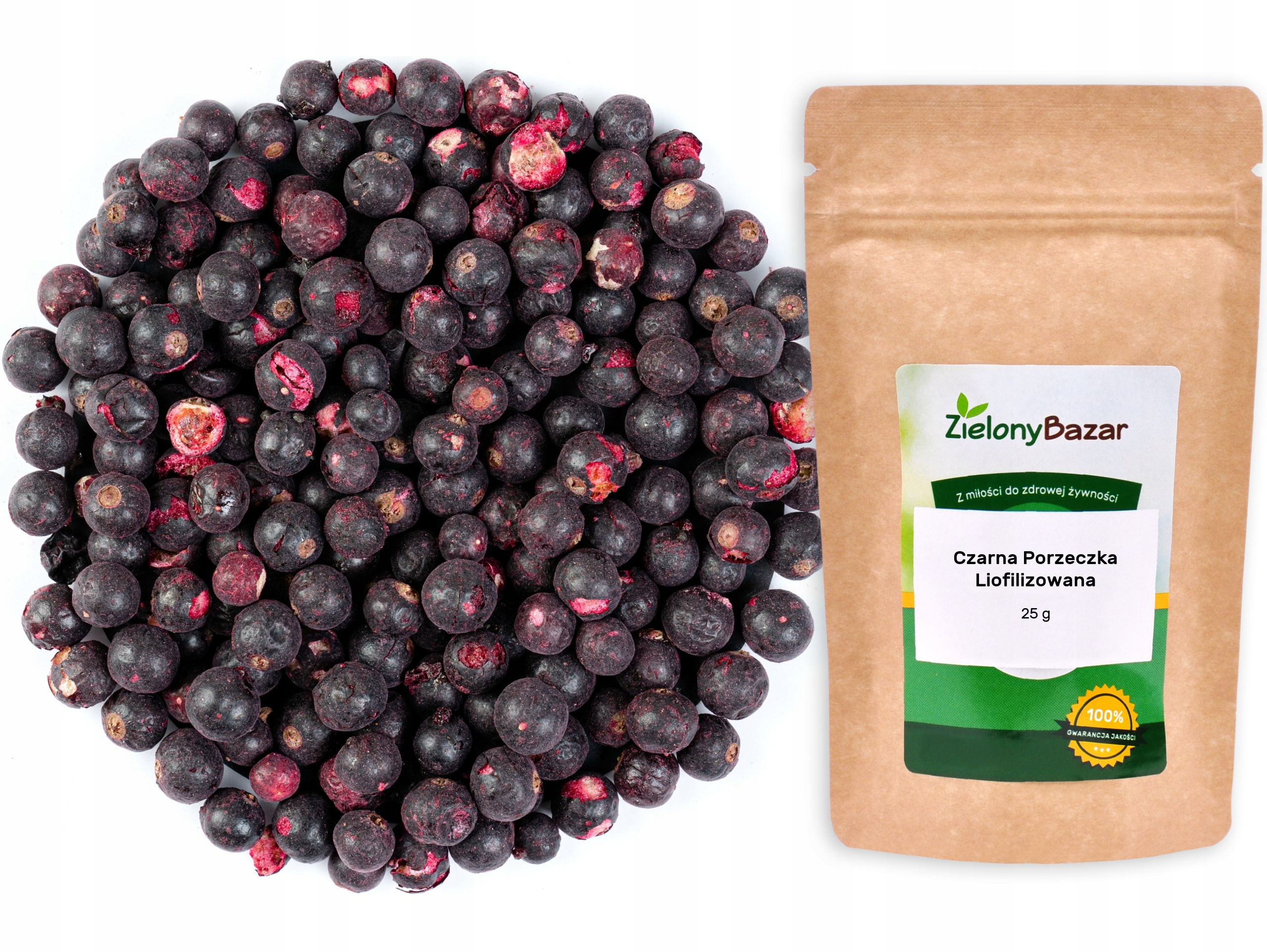 Ліофілізована чорна смородина в елегантній тришаровій упаковці Doypack зі шнурком. Використана упаковка забезпечує збереження смаку, аромату та поживних цінностей протягом тривалого часу.