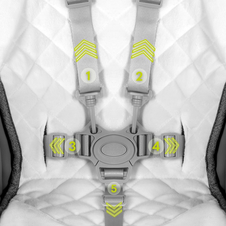 ✔️ Ремені безпеки- 5 - точкові ремені з 2-ступінчастим регулюванням висоти підтримують стабільне положення маленького користувача.