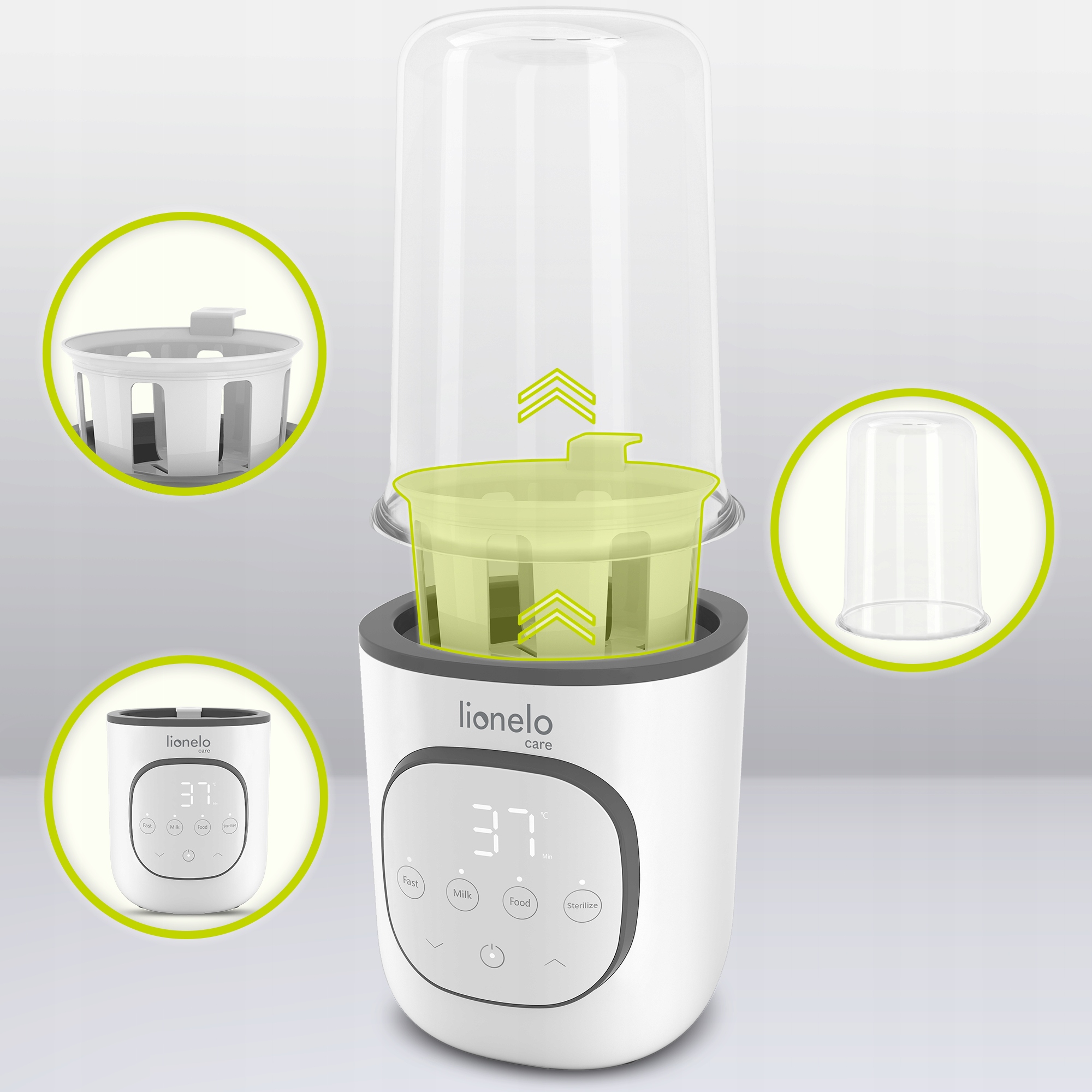 Швидке та просте розігрівання їжі? Це вже не проблема! Пам’ятаючи про це, ми створили підігрівач пляшечок Lionelo Thermup 2.0 White. Пристрій має функцію швидкого підігріву, при необхідності розморозить їжу і стерилізує пляшечки або пустушки. Але це ще не все!