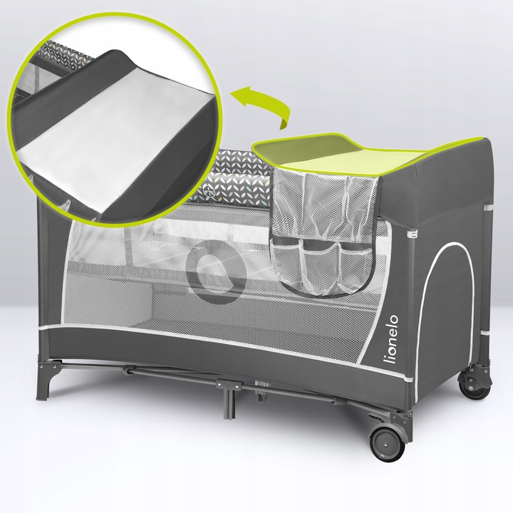 - Додаткова інформація:Бочки з сітки; Дві висоти підвіски матраца; Швидке складання і розкладання; Іграшковий бар; Пеленальний столик з органайзером