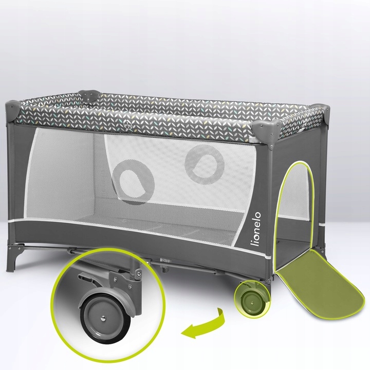 - Характеристики: Захист від випадкове складання; Бічний вхід на блискавці; М'який матрац; 2 колеса для переміщення ліжка
