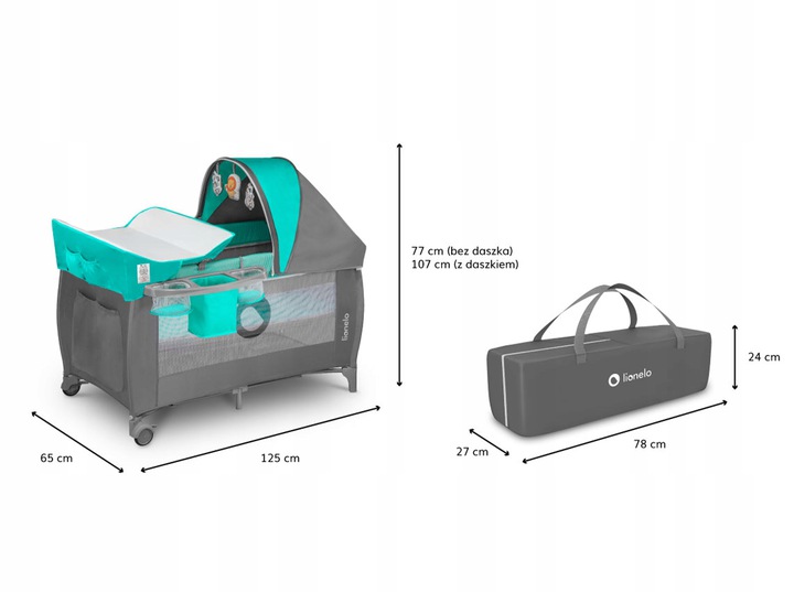 ліжечко оснащене високою якістю килимкою з піни з підвищеною гнучкістю , яка діє як підкладка і місце задоволення. Загартоване дно дозволяє вільно робити перші кроки, а гнучка піна забезпечує безпеку під час гри, завдяки якому дитині не загрожує болісне падіння. > Колеса гарантують повну мобільність у будь -який час, а тверді ноги забезпечують стабільність.