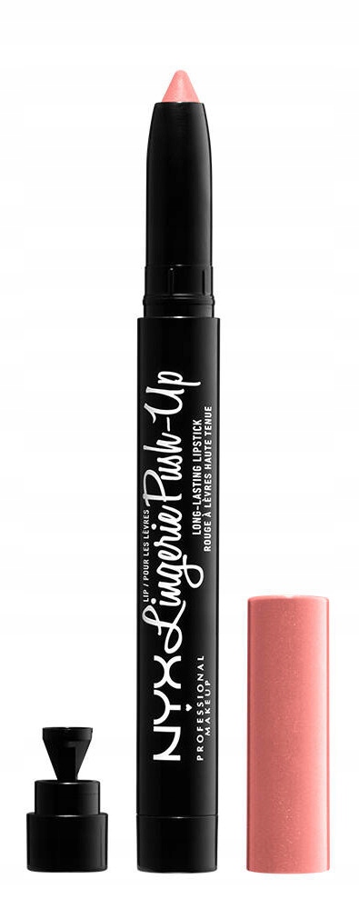 Стійка губна помада Lip Lingerie Push Up від NYX Professional Makeup. Губна помада. Він поміщений в зручну форму автоматичного олівця, з точилкою в нижній частині упаковки, тому він завжди буде ідеально заточений. Має спеціально розроблену кремову формулу з зволожуючими властивостями. Крім того, продукт залишає спокусливий матовий фініш без ефекту сухості губ і виділеної кутикули. Крім того, надає губам ефект пуш-ап. Завдяки точному аплікатору помада також ідеально підходить для окреслення контуру губ і наповнення їх кольором. Доступний у 12 відтінках.
