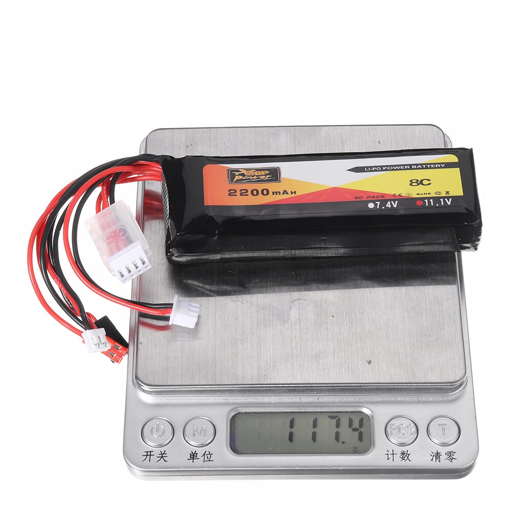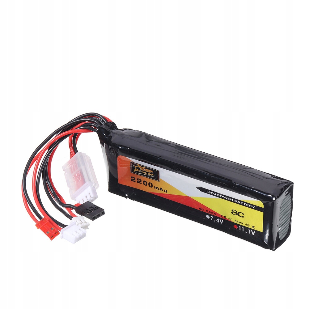 Параметр акумулятора: Zop Power 11.1V 2200mAh 3S 8C Ємність: 2200 мАг Розмір: 20*26*103 мм Коефіцієнт безперервного розряду: 8с Вага: близько 103 г Для: Передавач з плагіном JR JST Futaba Примітка. Через різницю між заходами розміри та вага акумулятора можуть бути незначно неточними.