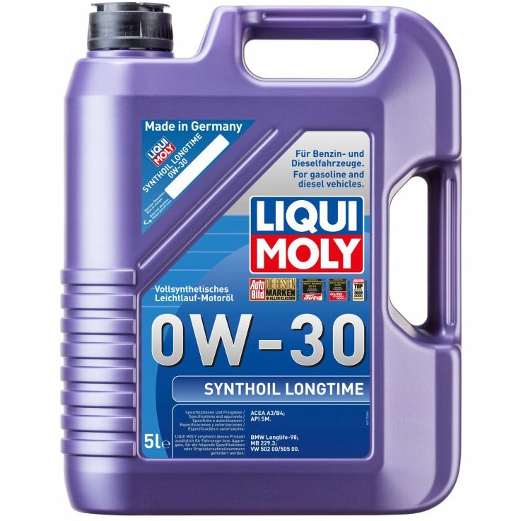 Моторне масло 0W-30 LIQUI MOLY – інше масло, що характеризується низькою в'язкістю, термостійкість і стійкість до окислення. Дозволяє збільшити пробіг між замінами масла, а також поліпшити пуск автомобіля при низьких температурах. Він присвячений більшості бензинових і дизельних двигунів, доступних на ринку.