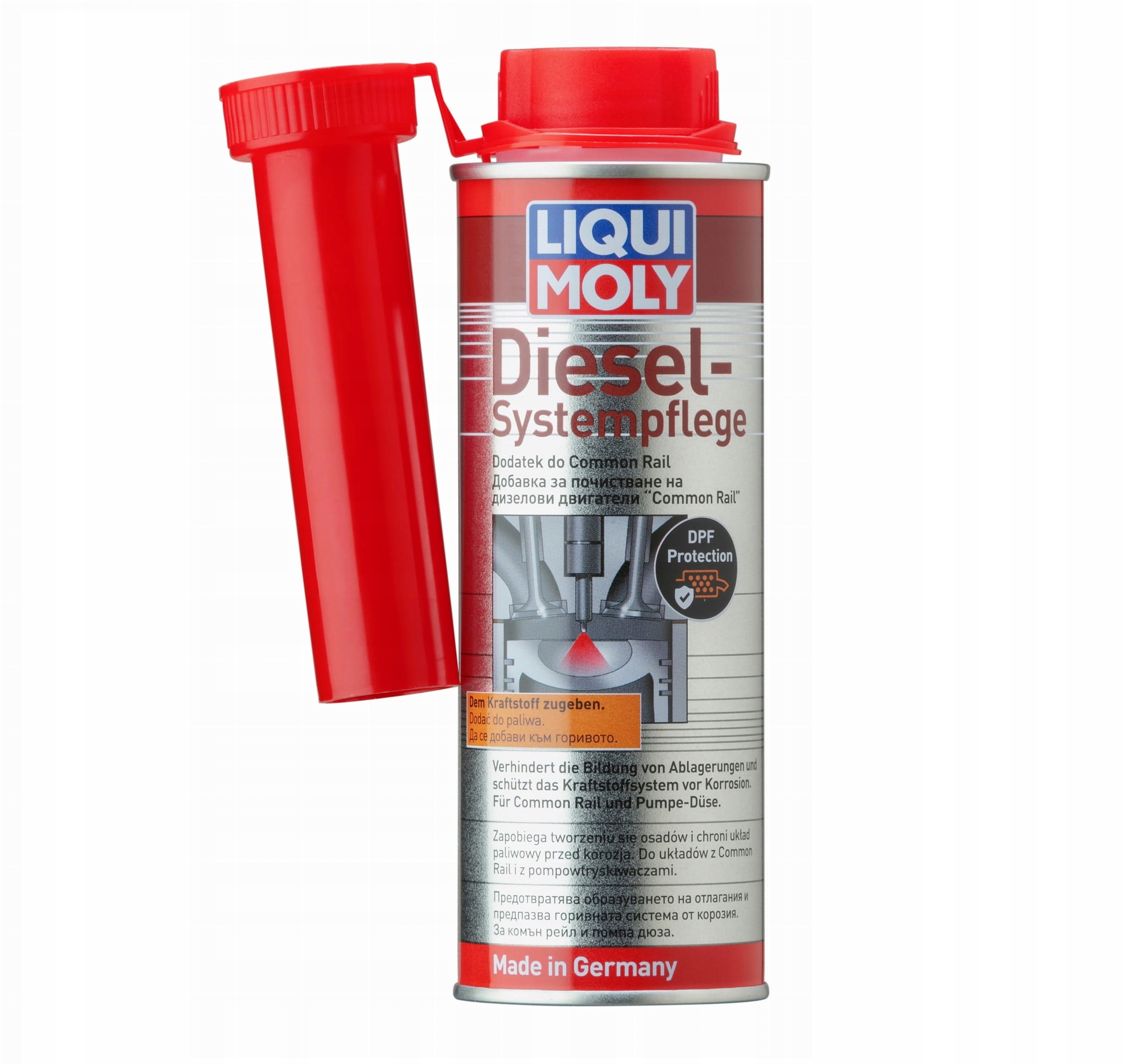 Засіб для захисту паливної системи. Змащувальні властивості дизельного палива знижуються зі зниженням вмісту сірки. Крім того, в системі уприскування утворюються відкладення, які значно скорочують термін її служби. Дизельна система Pflege захищає всю паливну систему Common Rail і насос-форсунки від відкладень, корозії та зносу. Підвищує надійність і забезпечує краще змащування.