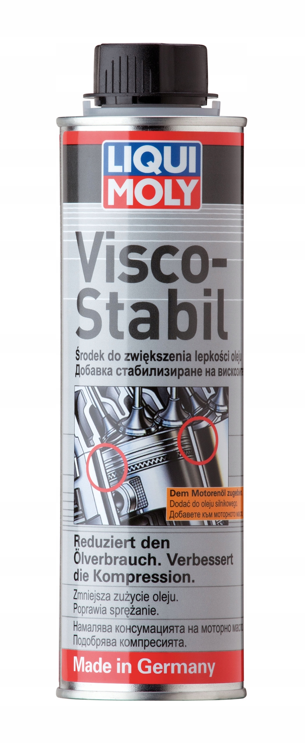 Засіб для підвищення в'язкості масла. Запобігає зниженню в'язкості моторного масла. Стабілізує тиск масла і мінімізує витрату масла за рахунок підвищення герметичності поршневих кілець. Засіб слід додавати в масло при його надмірному споживанні та в проміжках між замінами масла. Присадка до напівсинтетичних і синтетичних мінеральних масел.