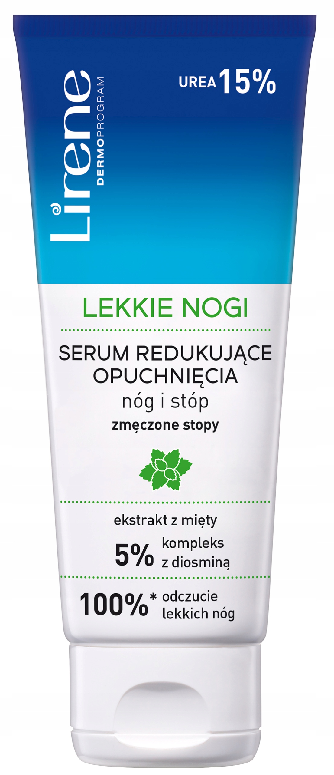 Сироватка, яка зменшує відчуття набряклості, ефективно полегшує втомлені та важкі ноги. Завдяки вмісту 15% сечовини (UREA) підвищується еластичність епідермісу та полегшується проникнення активних інгредієнтів. 5% комплекс з діосміном благотворно впливає на кровоносні судини, сприяє зменшенню набряку та супутнього відчуття дискомфорту. Екстракт м'ятим'яко охолоджує. Легка консистенція сироватки швидко вбирається і приносить полегшення. При регулярному застосуванні сироватки шкіра швидше регенерує, стає м'якою і гладкою.