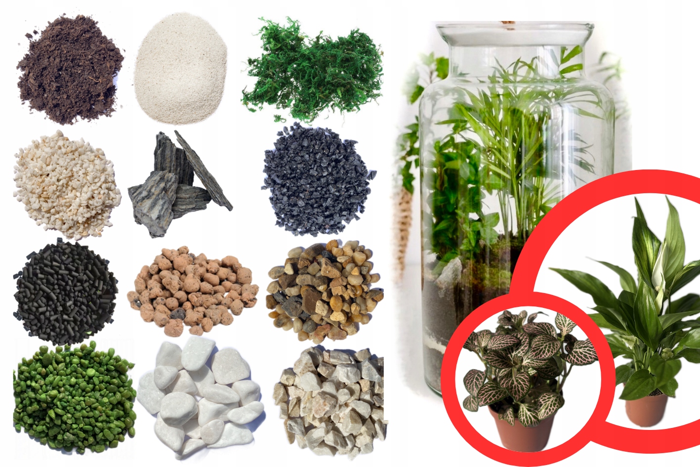 ЛІС В СКЛЯНІЙ БАНКІ КОМПЛЕКТ 14 ШТ - БАНКА 25см + СУБСТРАТ + РОСЛИНИ