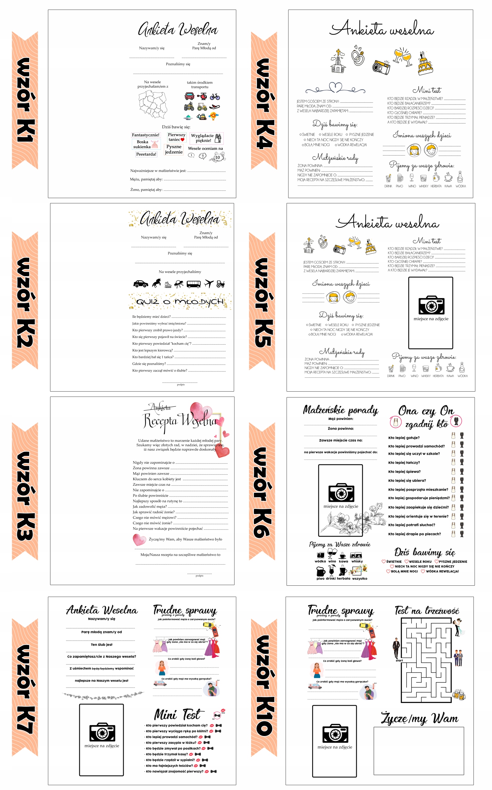 ➡ Ми друкуємо опитування, як стандарт, на кожному права сторінка (після відкриття книги будь-де на правій сторінці є текст опитування, а ліва сторінка вільна для записів ваших гостей) Якщо ви хочете отримати опитування на лівій сторінці - повідомте нам .
