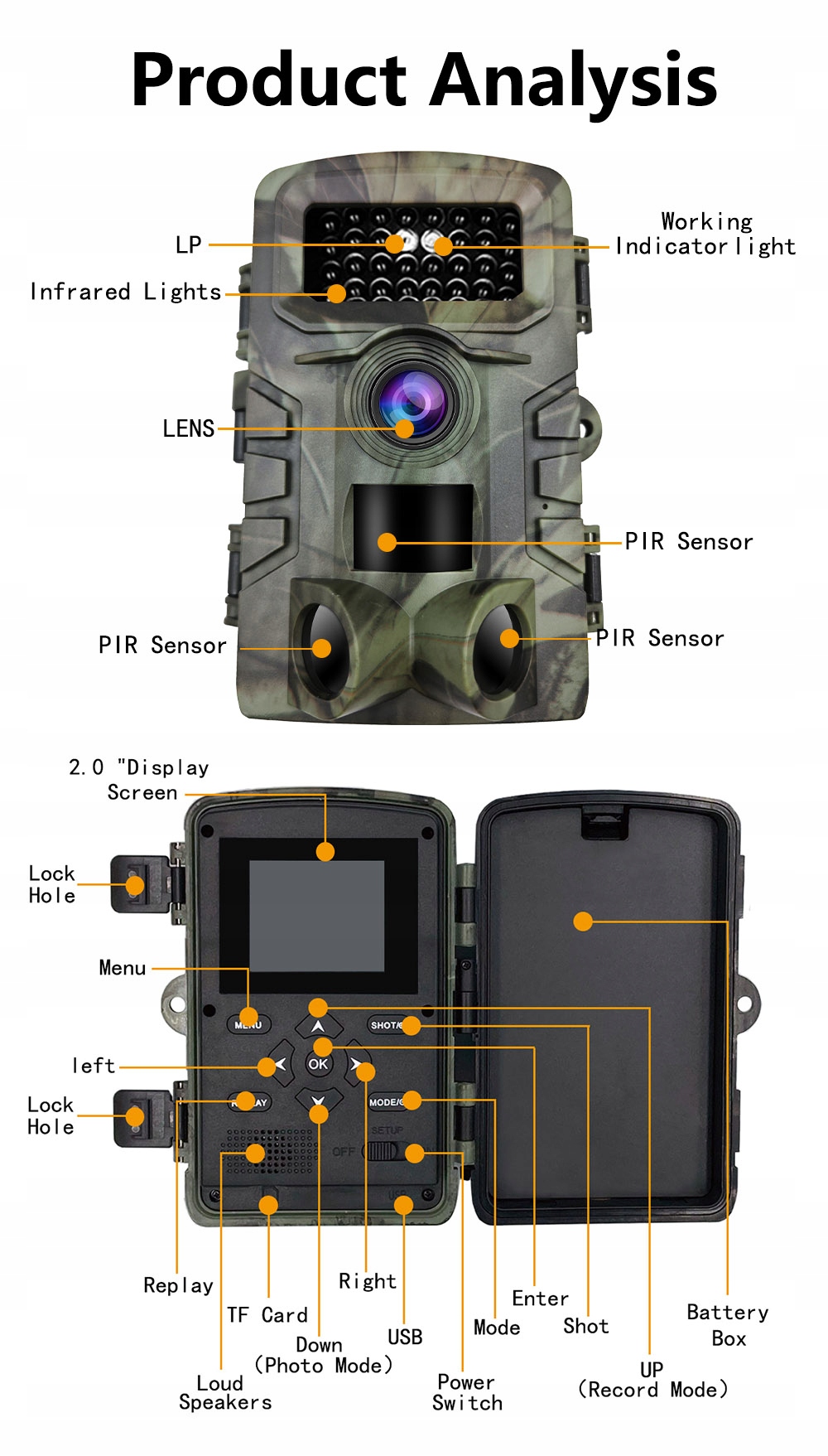 Високоякісна цифрова камера природи відома як фотографія. Камера Nature широко використовується, оскільки вона ідеально підходить для спостереження за місцем проживання тварин та моніторингу. Цей продукт має 8MPIXEL CMOS -датчик з роздільною здатністю зображення 16MPX та побудованим -2 '' РК -екраном. Повністю автоматичний інфрачервоний фільтр дозволяє використовувати камеру в темряві, і все завдяки 34 світлодіодам.