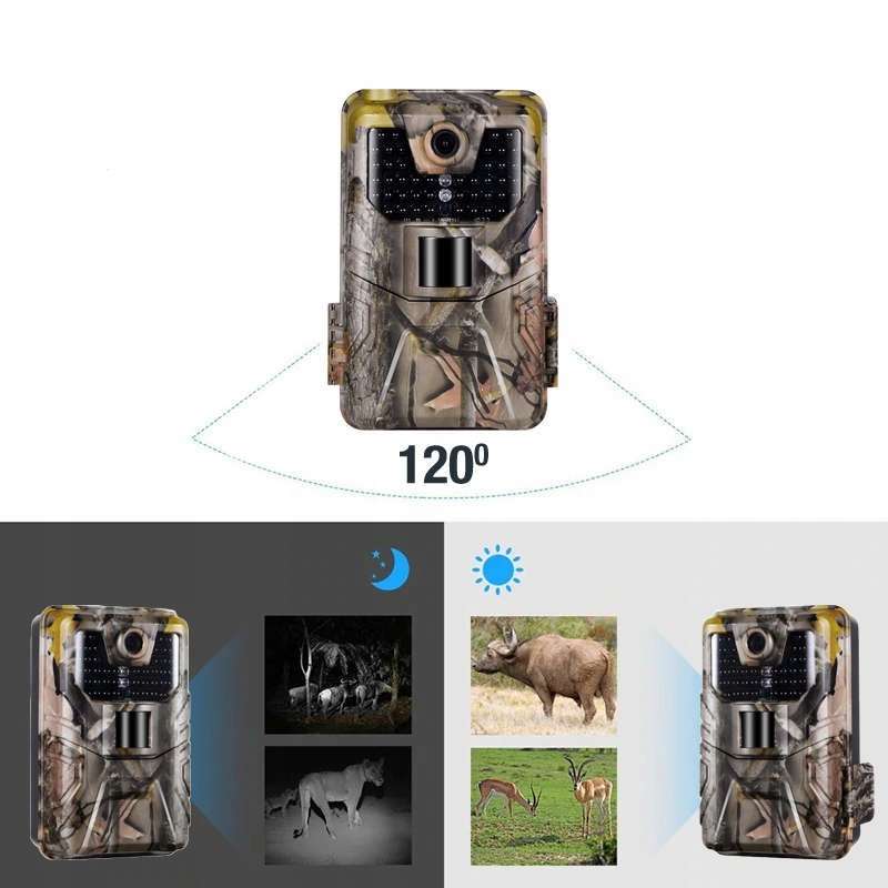 Завдяки використанню високоякісного датчика PIR (датчика руху), що реагує на зміни теплих об’єктів, кут виявлення збільшено до 120 градусів, завдяки чому людина/тварина, потрапляючи в поле зору камери, активує камеру раніше.