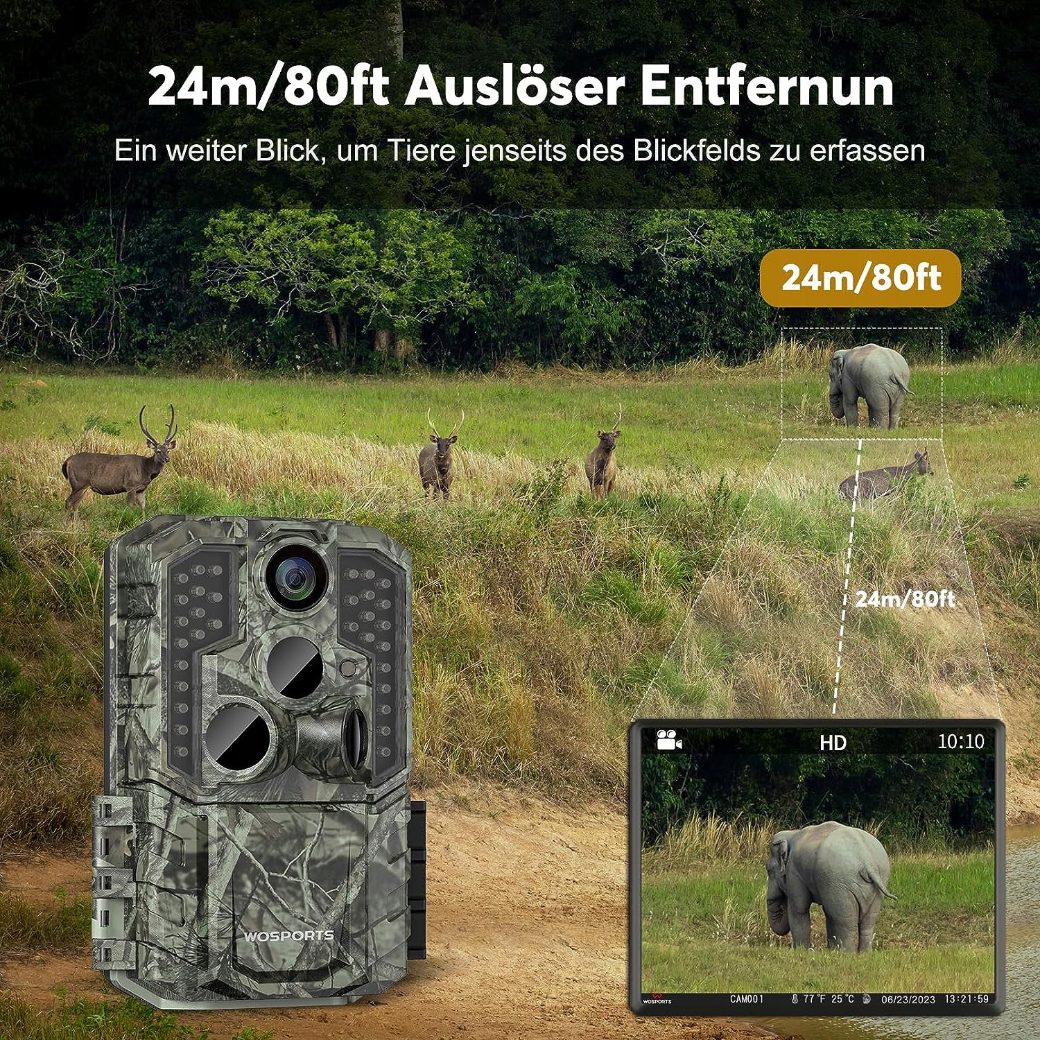 Камера для дикої природи 30MP 1920p FHD Камера для полювання Широкий кут 120° 0,2 с Тригер нічного бачення з датчиком руху, нічне бачення, водонепроникний, для мисливців, саду, дикої природи< /h1>