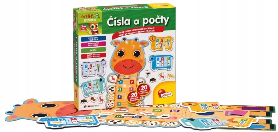 Навчіться порахувати смішно за допомогою тварин! Впорядкуйте жирафа та вивчіть перші числа та кількість. Навчіться розрізняти геометричні форми. Шість різних головоломок з тваринами допоможуть вам вирішити числові завдання. У наборі: 1 великі головоломки жирафа з першими числами та формами 6 головоломок з першою кількістю чисельних завдань 20 Інструкція з головоломки тварин допомагає в розробці координації дітей та логічного мислення. Рекомендується дітям від 3 до 6 років.
