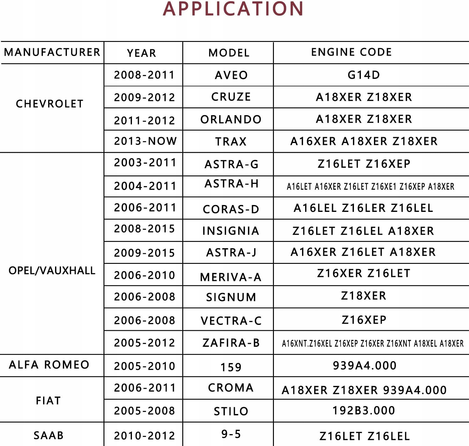 Лист часу Opel Astra G H Insignia fiat croma alfa 159 1,6 1,8 16v