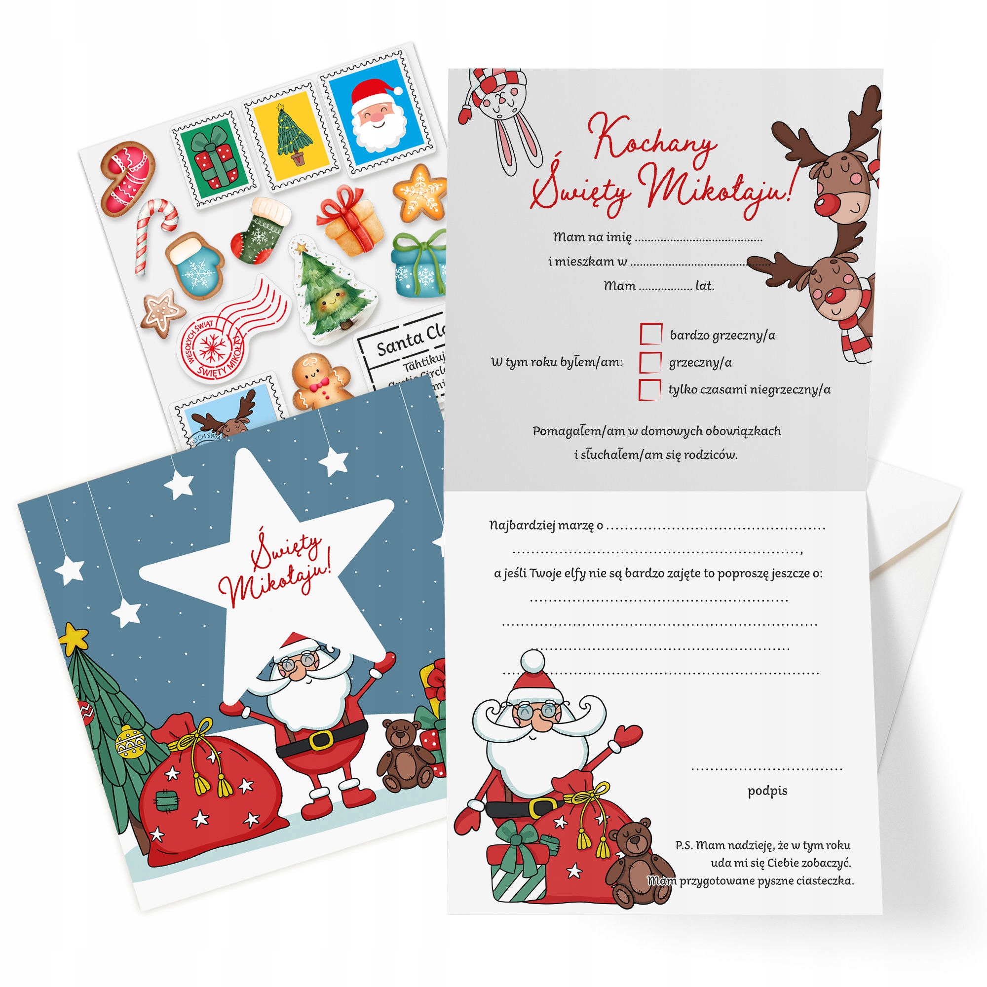 ЛИСТ ДІДУ МОРОЗУ АДВЕНТ + КОНВЕРТ + НАБІР ДИТЯЧИХ НАЛІПОК