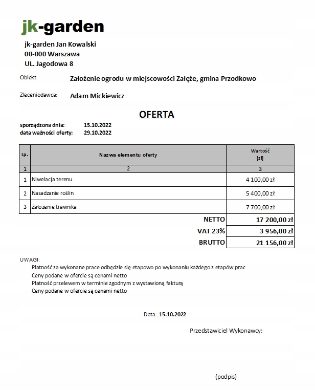 Завдяки аркушу ви підготуєте професійну цінову пропозицію та пропозицію для свого клієнта. Ви не пропустите жодного елемента.