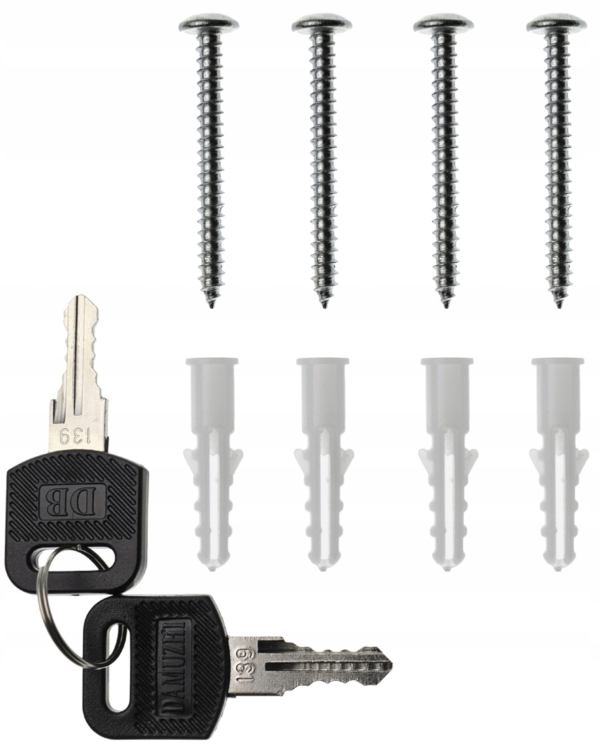 ✔ Розширювальні дюбелі з гвинтами для встановлення (4 шт.) і два ключі в комплекті.