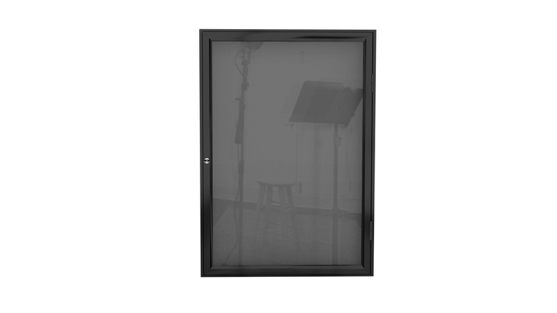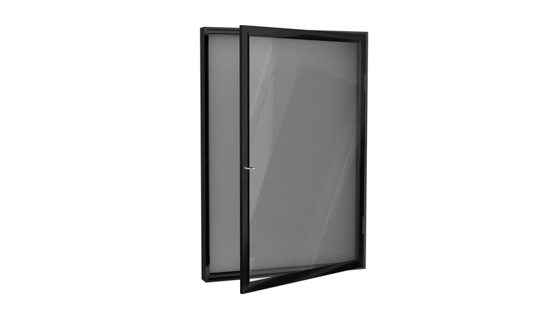 Вітрина виготовлена з алюмінієвих профілів, задня частина - магнітна пластина. За бажанням можлива заміна магнітної пластини на коркову. Двері на замок (в комплекті два). У набір входить набір магнітів. Склопакет виконано з оргскла товщиною 4 мм (AKRYLON XT). Продукт стійкий до різних погодних умов, але його також можна встановлювати всередині будівель.