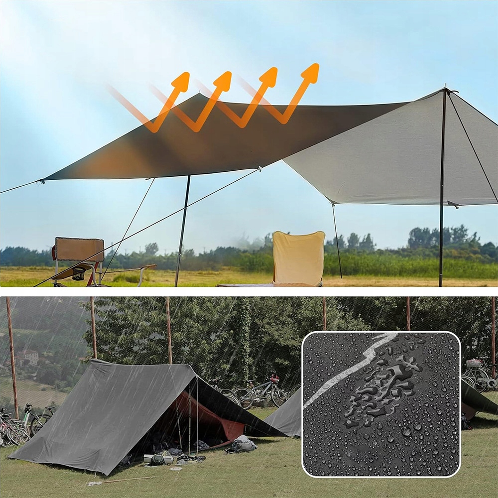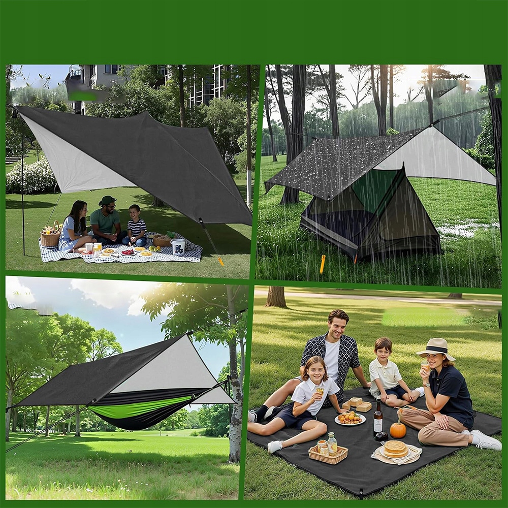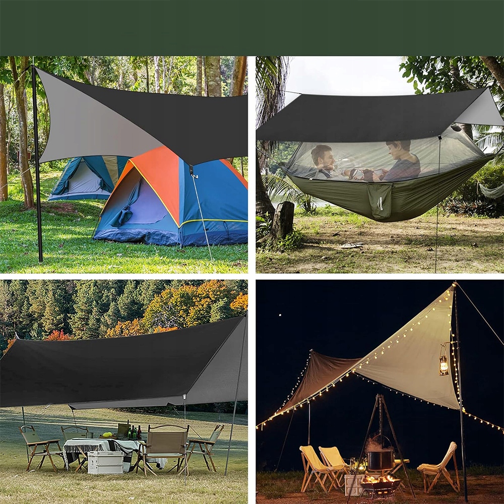 може використовуватися як дощова кришка для гамака, простий брезент для намету або килимки для пікніка. Він ідеально підходить для захисту від сонця, походів, кемпінгу, рюкзаків, плавання на човні, спортивних заходів, фестивалів, подорожей, пікніків та пляжу.