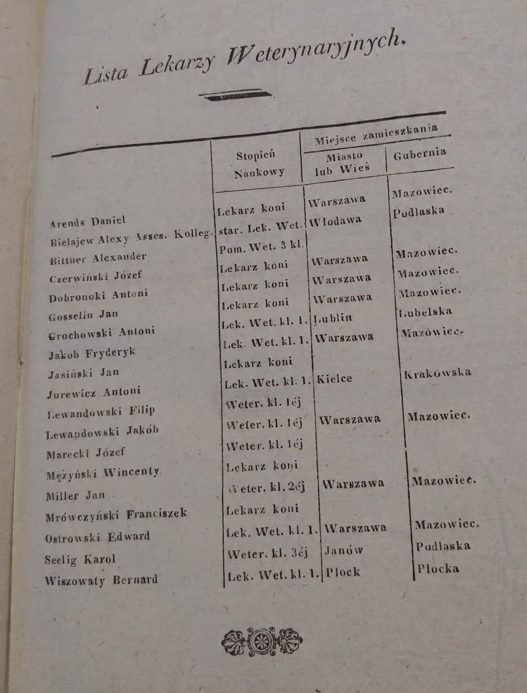 LISTA LEKARZY I APTEKARZY w Królestw. Polskim 1839