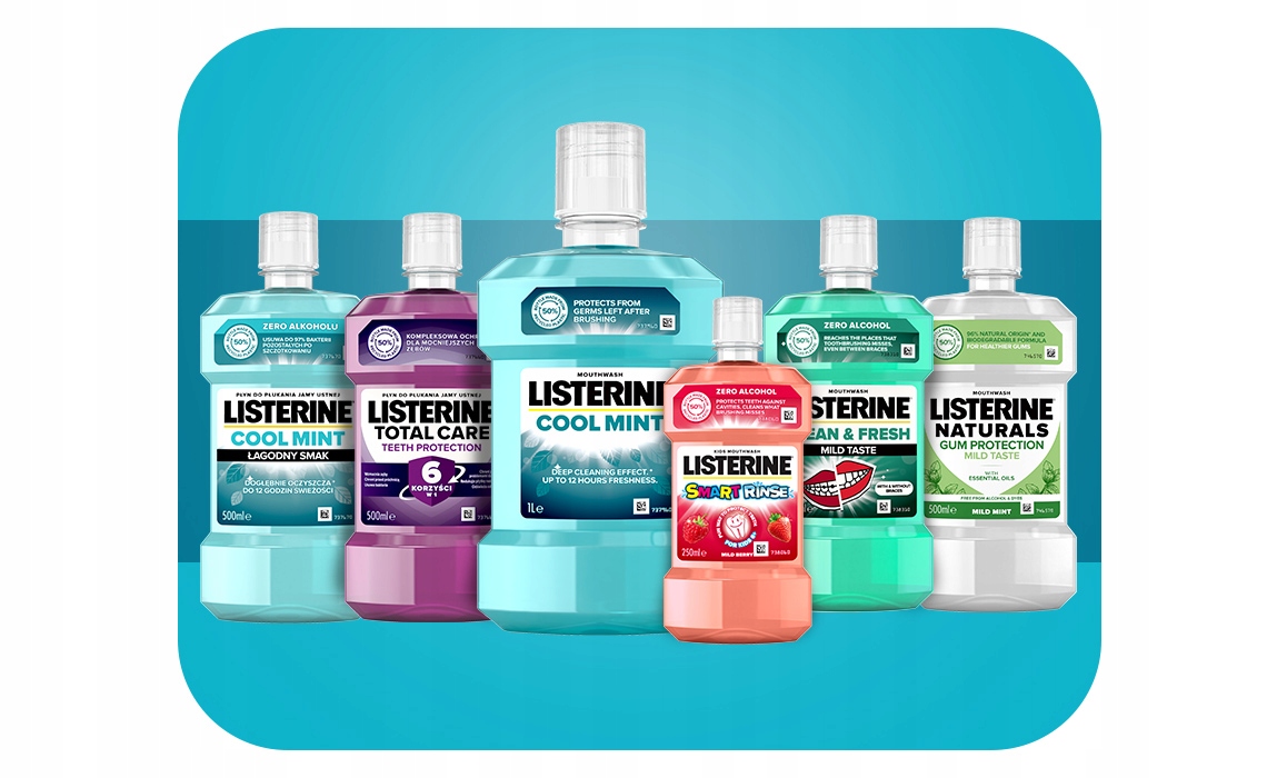 - Listerine® для щоденної гігієни порожнини рота для всієї родини,