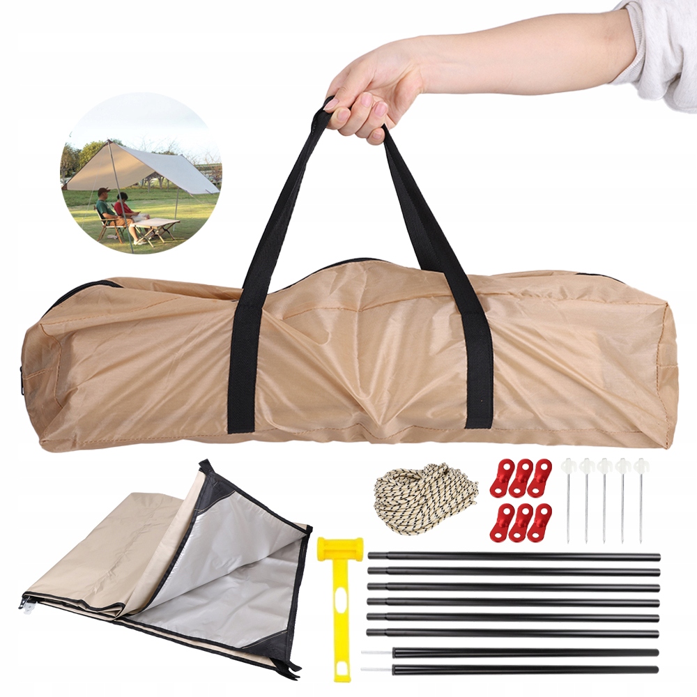 - 🌈 - 【БАГАТОФУНКЦІОНАЛЬНИЙ ПОРТАТИВНИЙ ТЕНТ】: Попередньо складений тент постачається з маленькою оксфордською дорожньою сумкою, яка дає змогу організувати набір тенту для намету, щоб ви могли брати його куди завгодно без будь-які клопоти. Незалежно від того, збираєтеся ви на пляж, у парк, проводити час із сім’єю у дворі чи займатися своїми справами, ви можете подовжити тент свого намету, просто ввівши мотузку в траву з доданих кілочків.