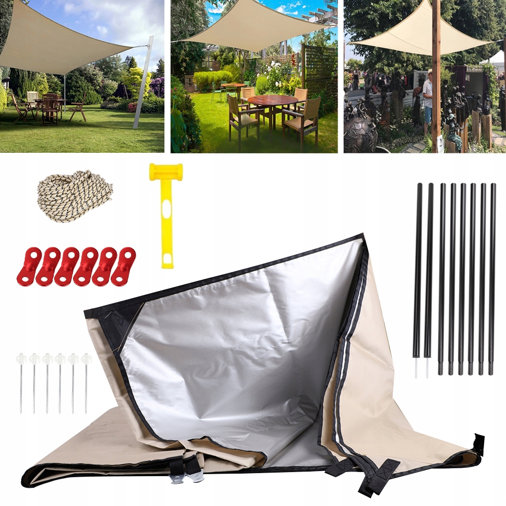 - 🌈 - 【МИТТЄВА СКЛАДКА】: Цей тент для намету легко зібрати, і намет відкривається лише за кілька хвилин. Якщо сонце рухається, ви можете легко пересунути наземний якір або відрегулювати положення полюса, змінити кут тіні, отримати ідеальну тінь і насолоджуватися прогулянками на свіжому повітрі.