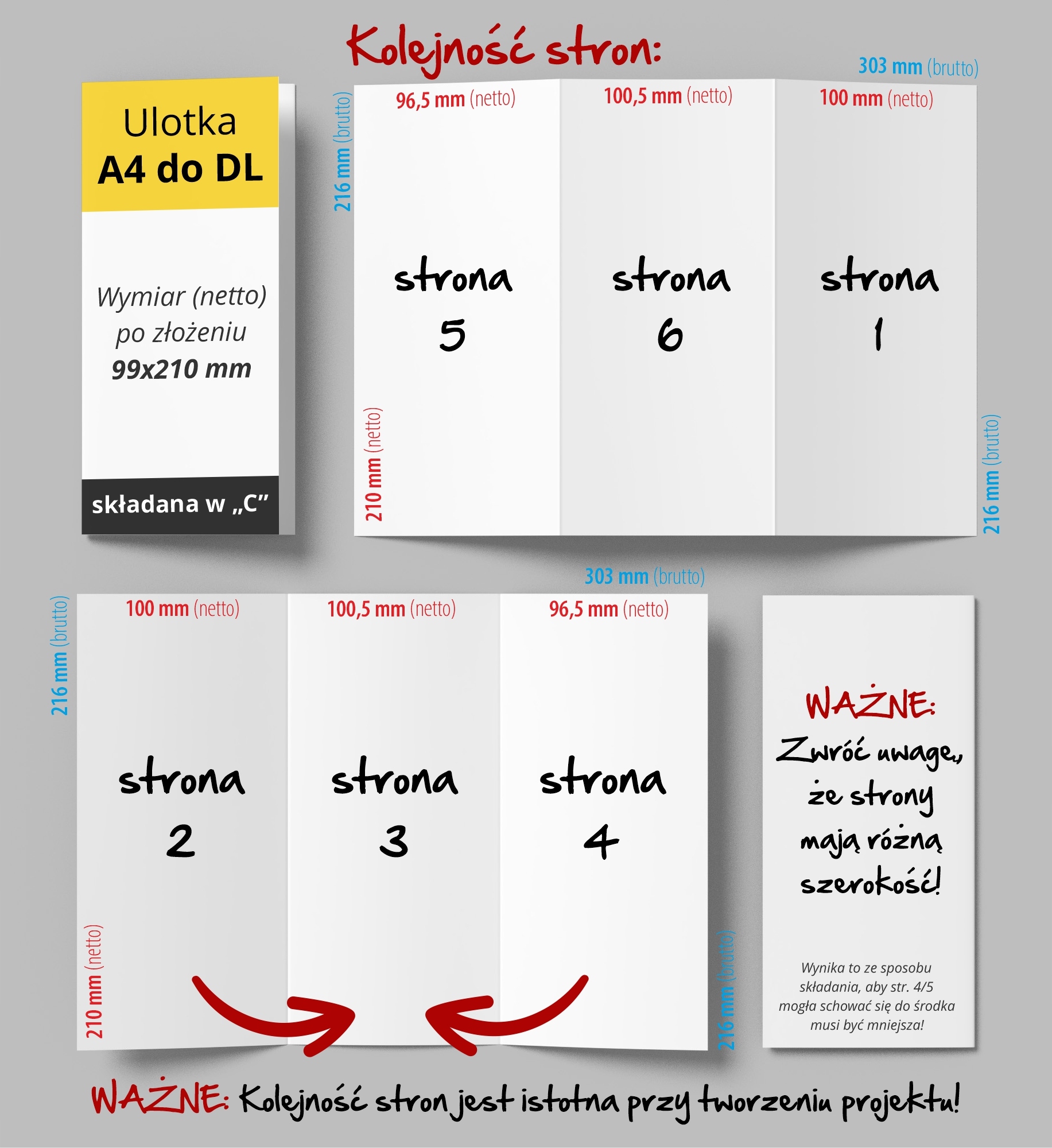 Дизайн A4 листівки, складені в DL в "C" тут: https://tiny.pl/dp7fh