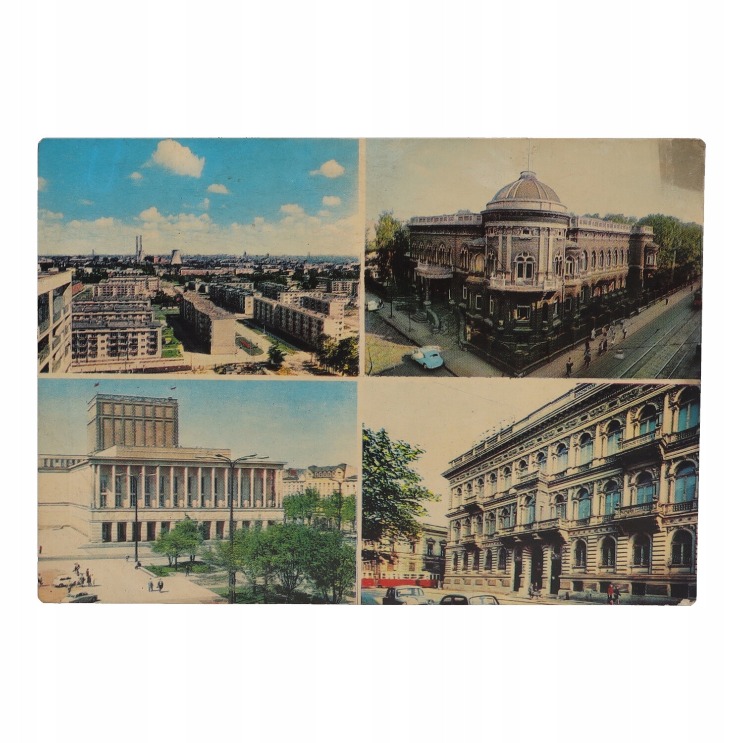 Листівка Національної видавничої агенції з фотографіями К. Яблонського, Т. Білінського та П. Красовського, що показують краєвиди з Лодзі – Вищу музичну школу, Великий театр і Художній музей. Сліди використання. Розміри: 10,5 х 14,5 см. Рекомендую колекціонерам