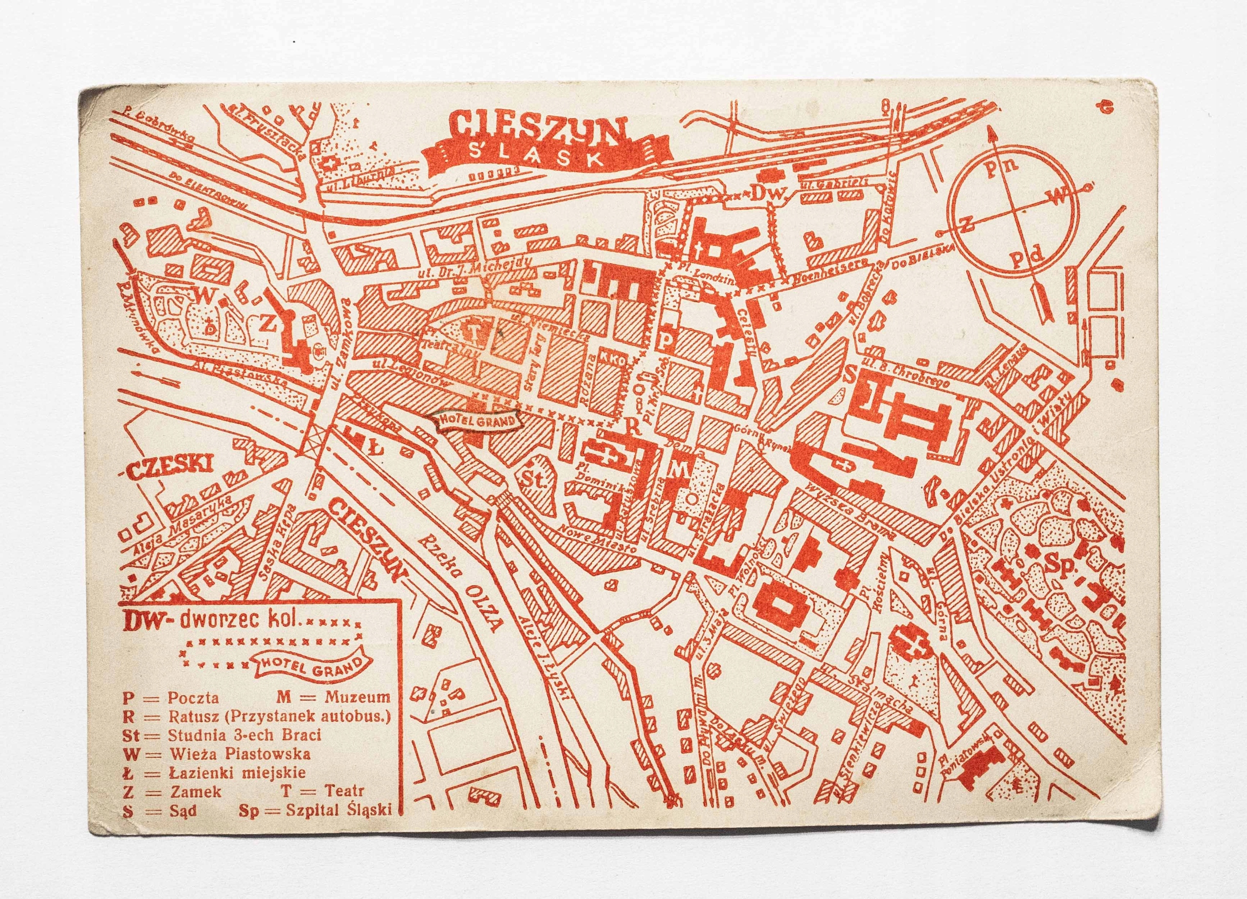 ЛИСТІВКА ЦЄШИН - КАРТА МІСТА, РЕСТОРАН І КАФЕ HOTEL GRAND, Друга Республіка Польща