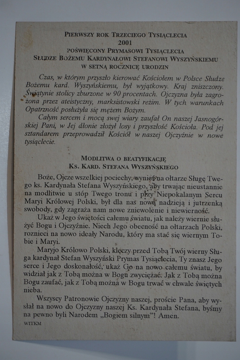 ЛИСТІВКА КАРДИНАЛА ВИШИНСЬКОГО ПРЕДСТАВНИКА МИЛЕНІЯ