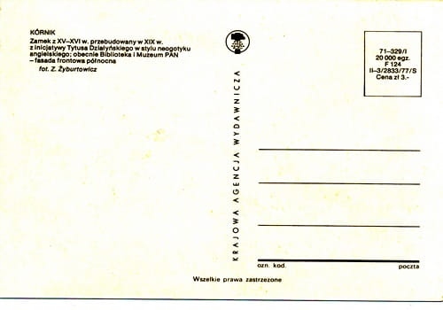 Оплачивая «Открытка Корник - 05609» данное изделие из «Великопольская (Гросполен)» вы можете быть уверены, что после оформления заказа, доставки в Украину, вы получите именно то, что заказывали, в оговоренные сроки и европейского качества.