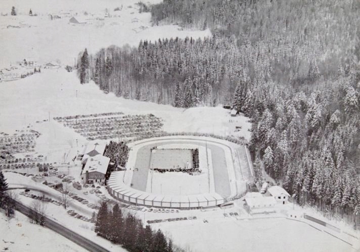 Листівка льодового стадіону в Інзеллі (чорно -біла)