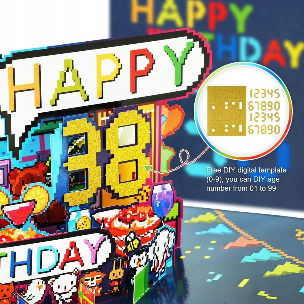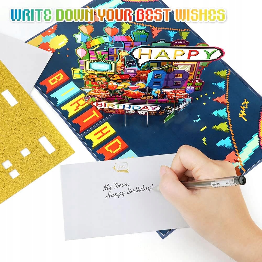 ① листівка на день народження, спливаючі вікна, побажання 1-99. День народження, спливаюча листівка, листівка на день народження, для жінок, чоловіків, дітей, набір листівок на день народження - конверти в наборі