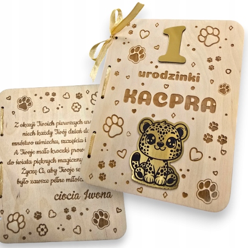 Наша дерев'яна персональна листівка до дня народження - це ідеальний спосіб відсвяткувати перший рік життя вашої дитини.