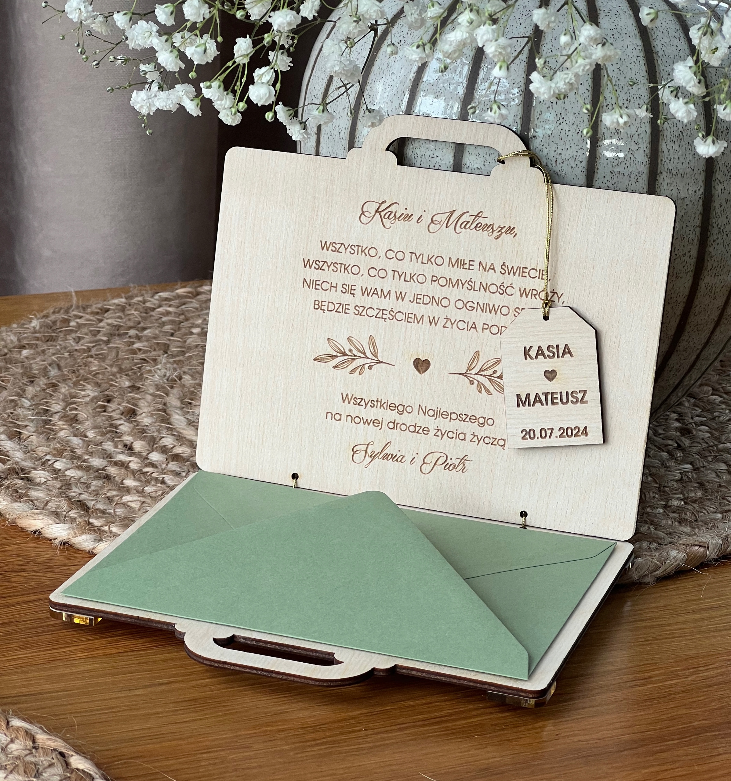 ❤️Дерев'яна листівка на весілля у формі валізи.