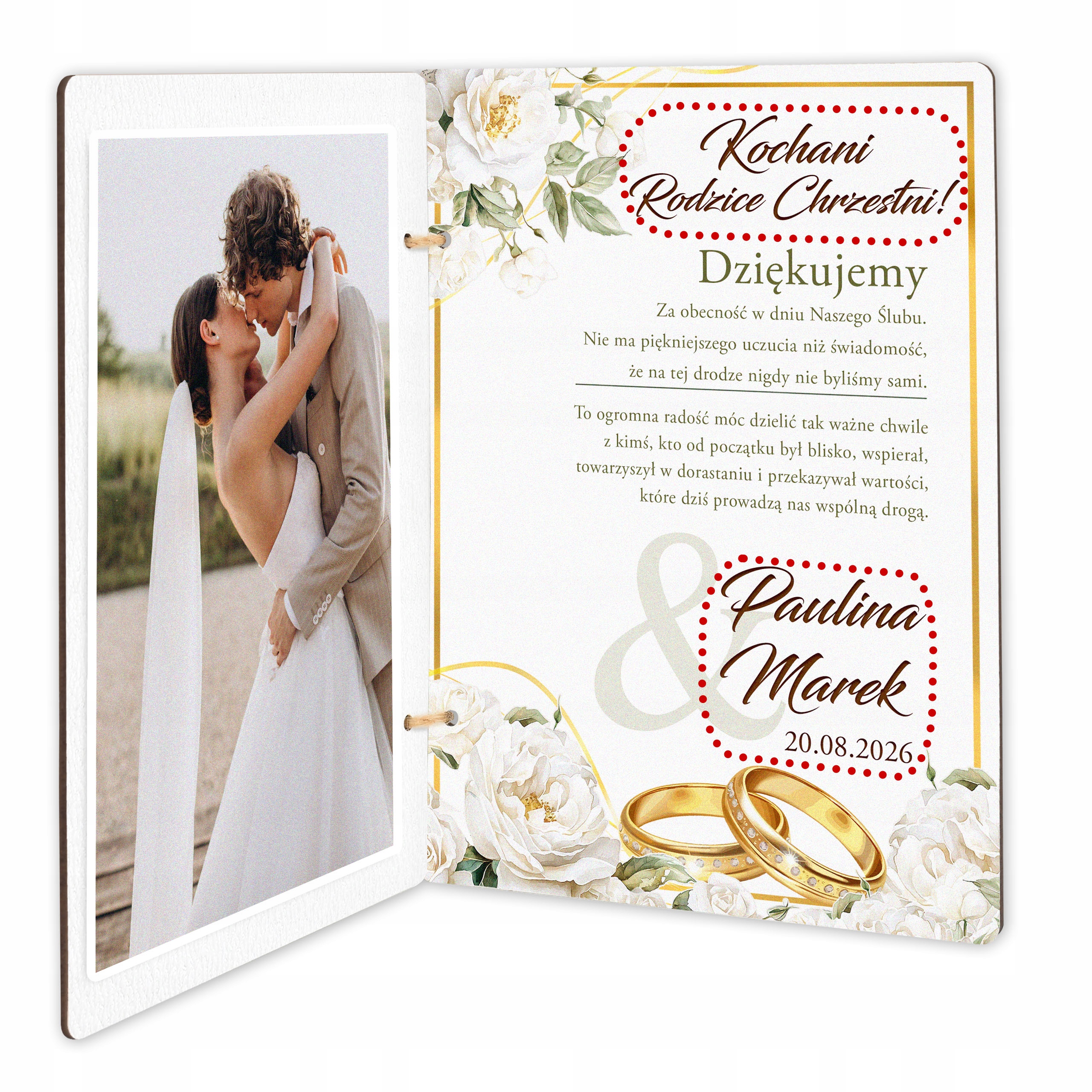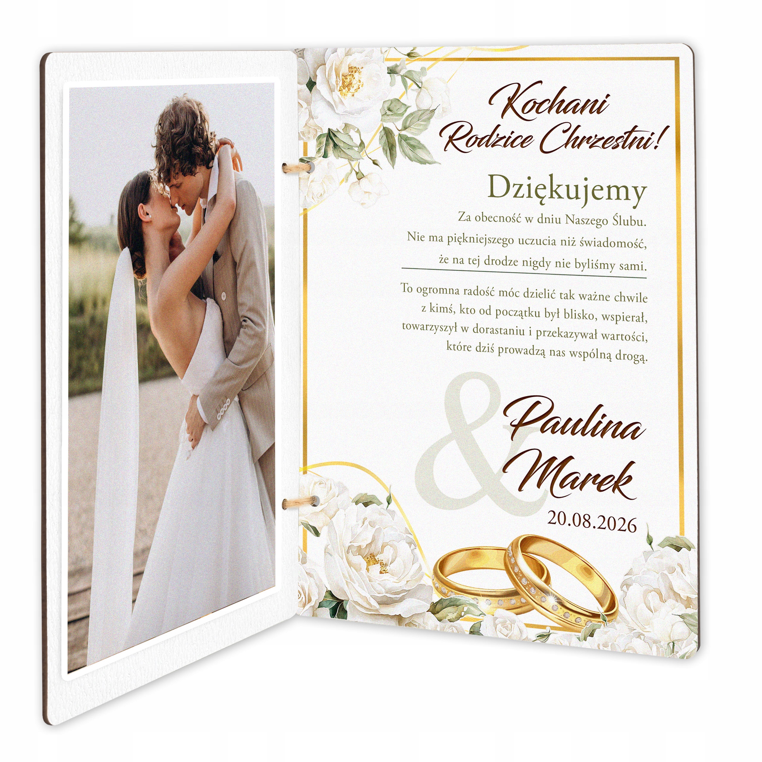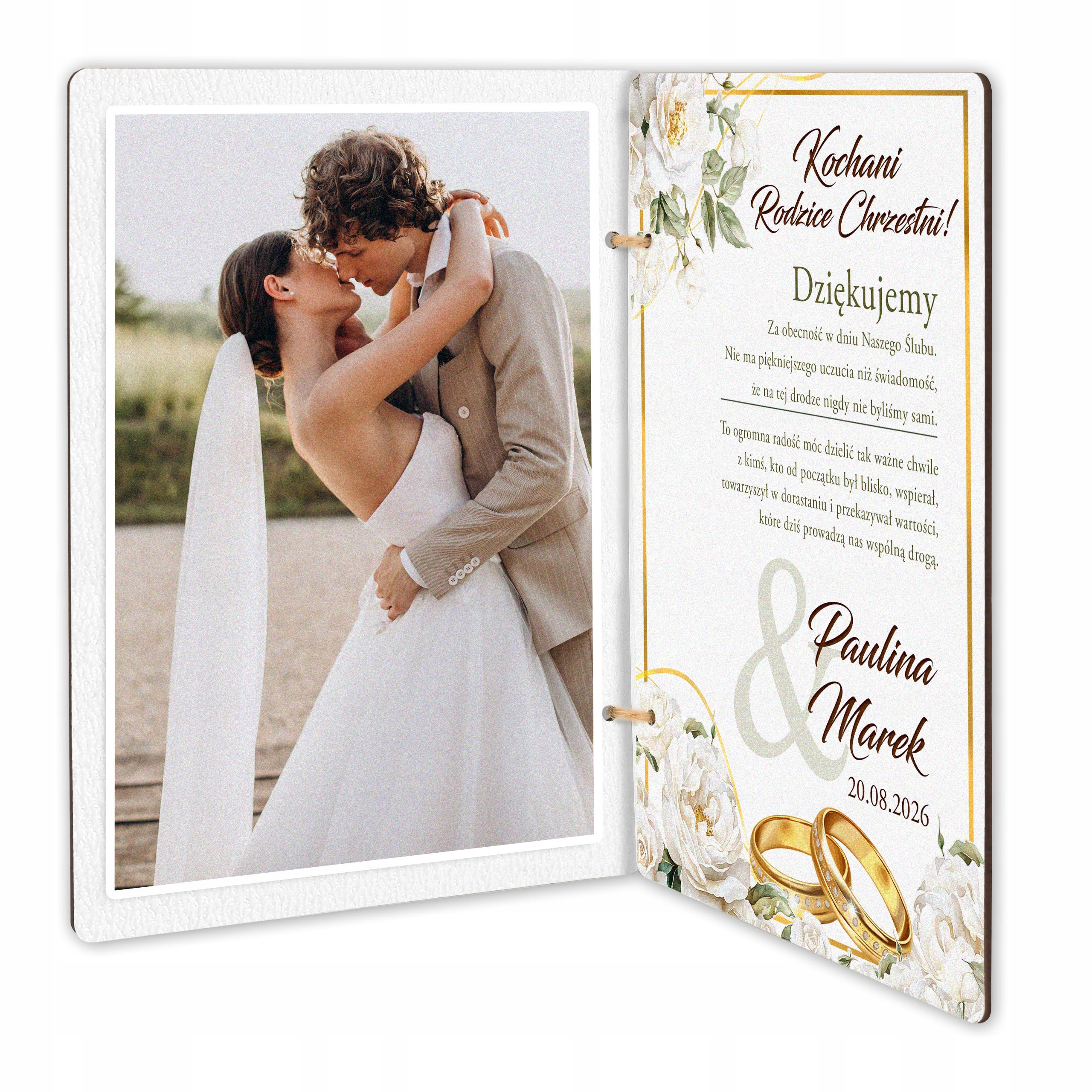 ⭐ Оригінальна подяка кумам/кумі/кумові з нагоди весілля - Дерев'яна листівка з персоналізацією та місцем для фото!